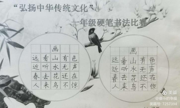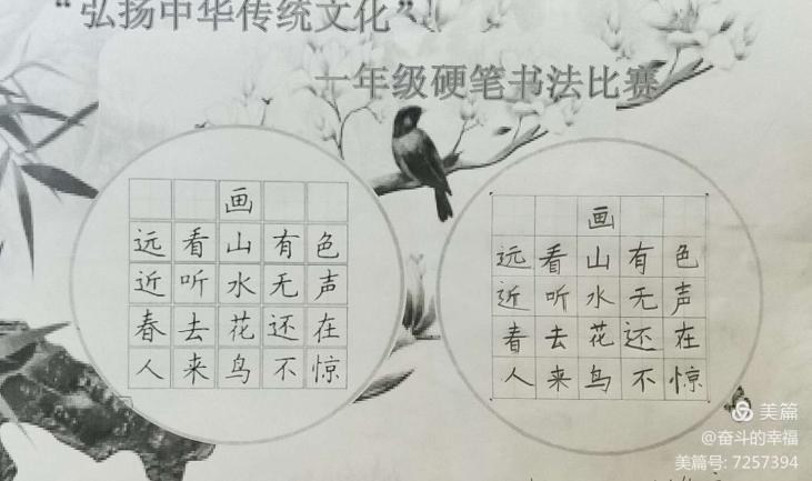 通过这次硬笔书法比赛活动,既丰富了学生的文化生活,培养了学生良好的练字习惯,激发了学生的书法兴趣和爱好。同时也提高了学生的审美意识。另外,孩子们在书写中暴露的一些问题也引起我们老师的重视,比如握笔姿势、坐姿、字体的间架结构等等。一手好字,并非一朝一夕,一蹴而就,相信在以后日常教学中,我们多一点耐心引导,多一点爱心感化,我们的学生都能一笔一划写好字,一言一行做真人!