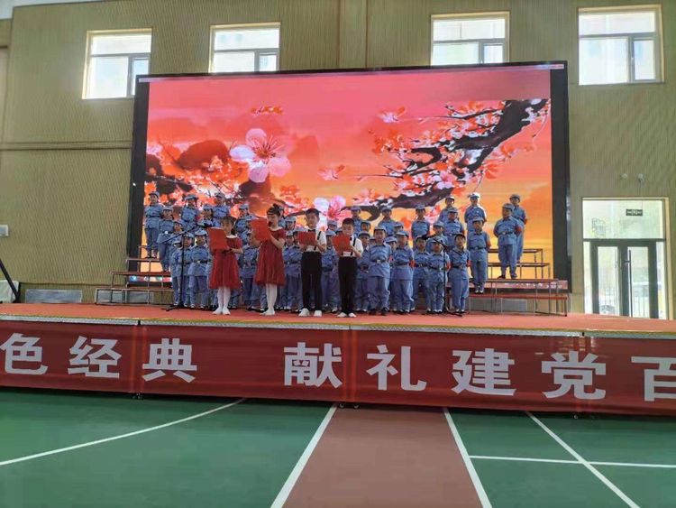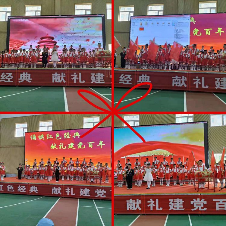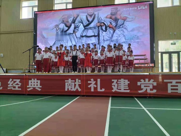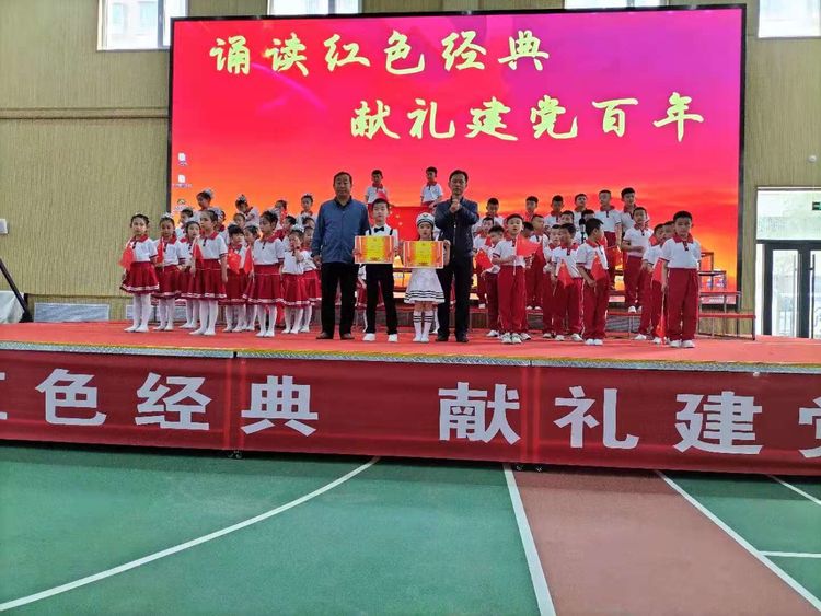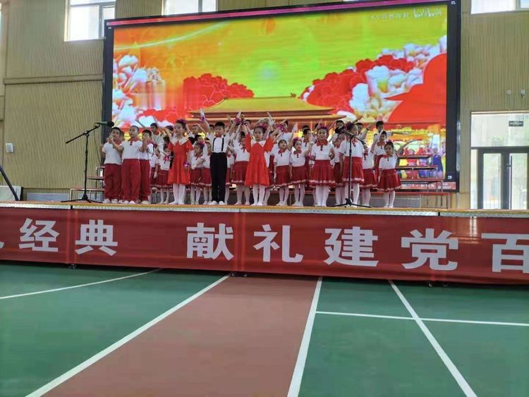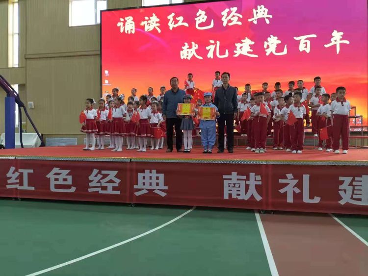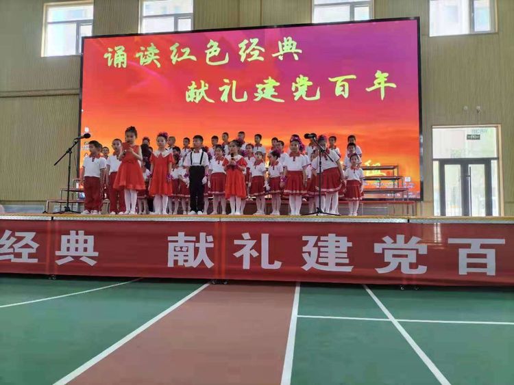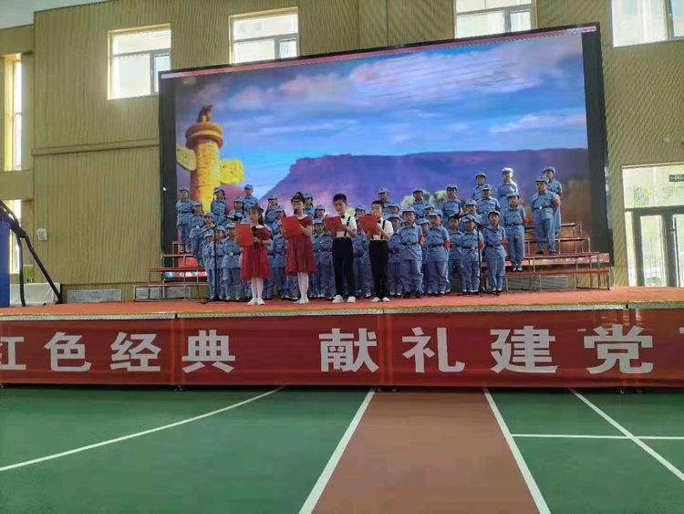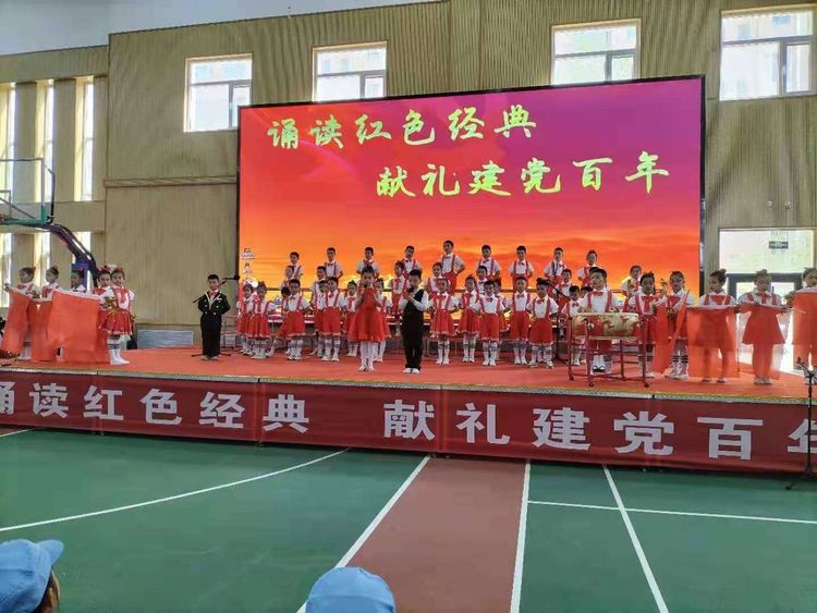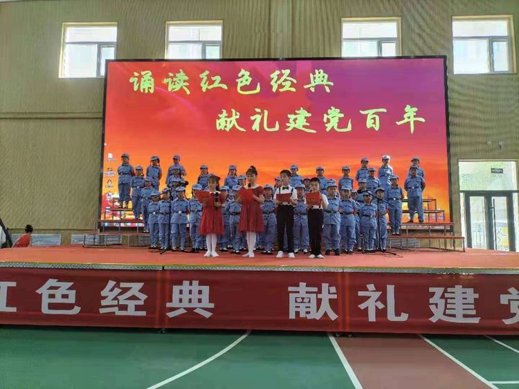 2021年,中国共产党将度过她100周岁生日。历经沧桑巨变,共产党走过了一段光辉历程,身为新时代少先队员,就让我们红领巾心向党,跟随共产党走过的脚步,一起追寻她百年光辉的足迹吧! 为了提高同学们爱党爱国热情, 2021年5月17日,灵武市第四小学一年级组在学校风雨操场举行了红色经典诵读主题活动。