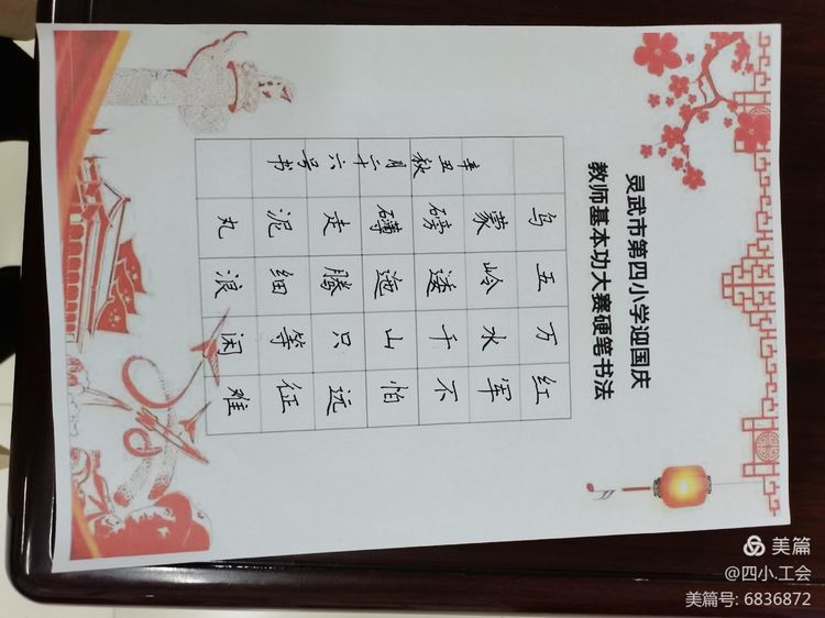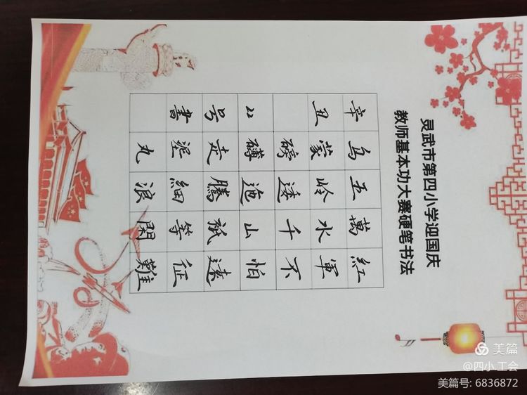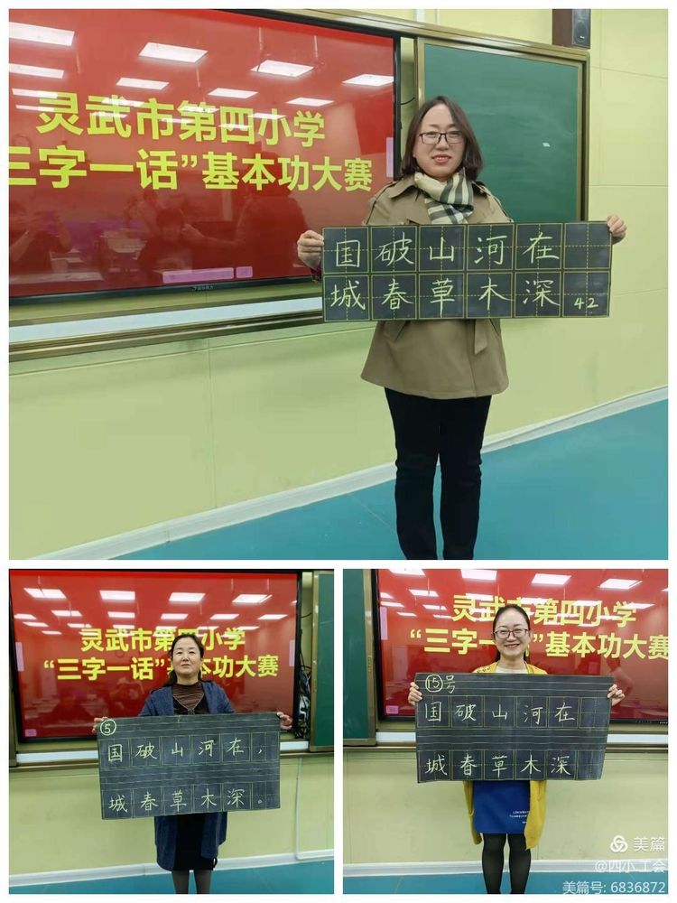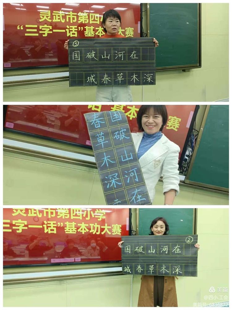 为贯彻落实《灵武市关于举办2021年全区中小学教师及师范生“三字一话”基本功大赛的通知》精神,落实2020年全国语言文字会议精神,加强中华优秀传统文化教育传承,提升教师综合素质和专业化水平,强化教师“钢笔字、毛笔字、粉笔字和普通话”教学基本功和教学技能训练,形成以赛促教、以赛促学、以赛促练的良好局面,第四小学工会开展了“三字一话”基本功比赛活动。