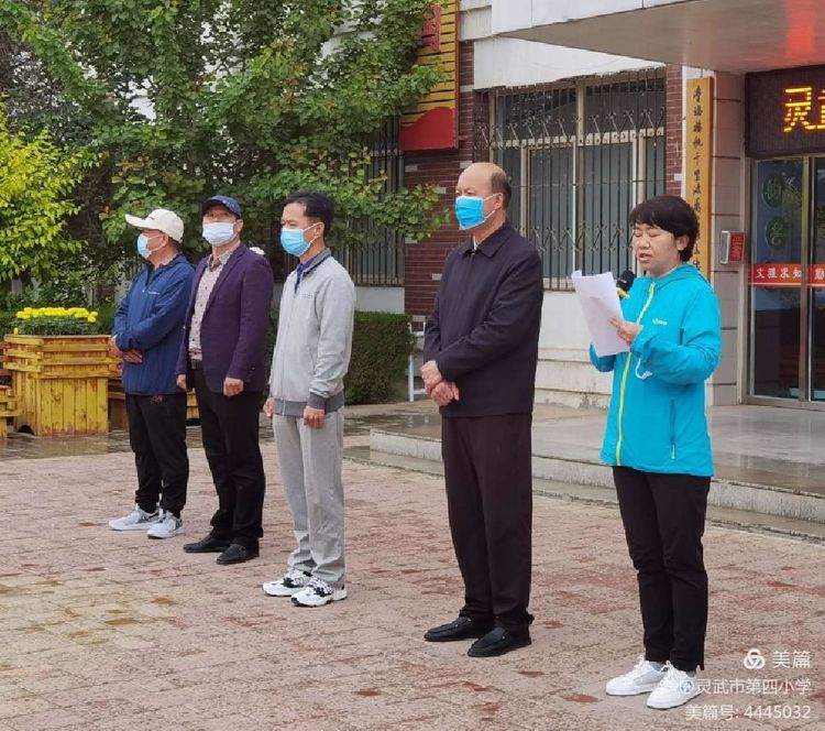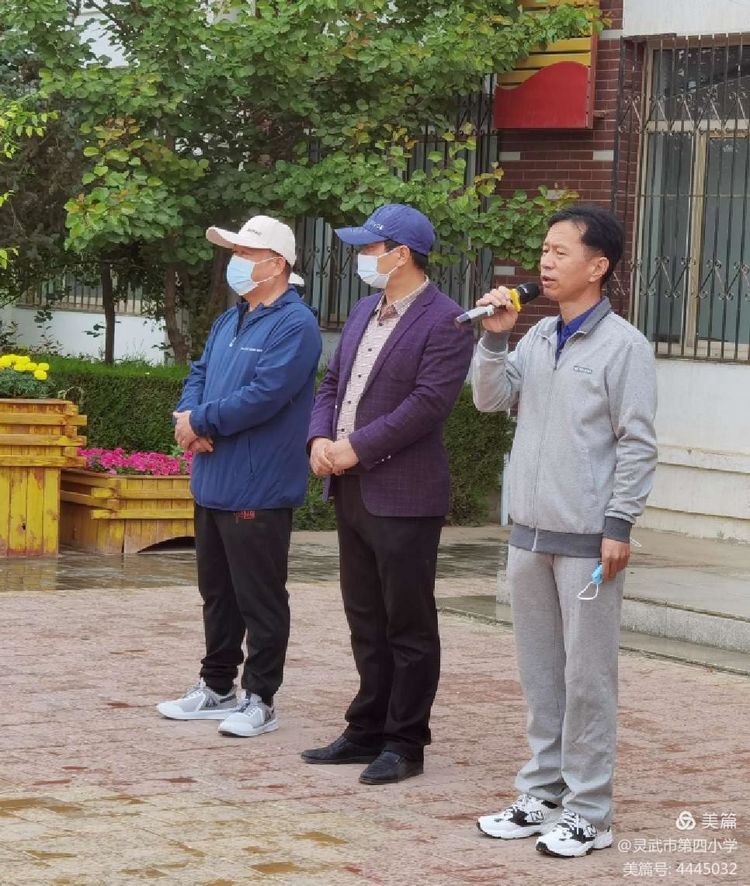 杨正东校长宣布“灵武市第四小学2022年春季趣味运动会开幕”