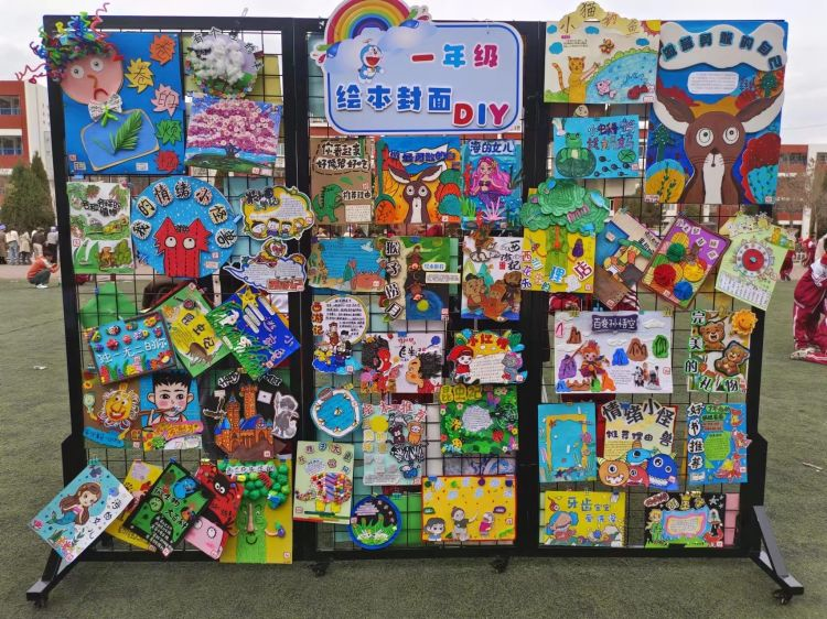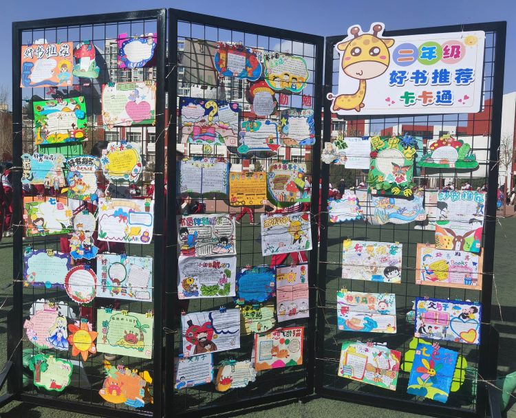 热闹非凡的操场上,四年级各班精心布置自己的摊点,各具风格的海报、吸引眼球的广告语、花式的广告牌。孩子们把将要交换的书籍整齐有序地排列开,等待它的新主人。书市上童话书、寓言书、故事书、漫画书……琳琅满目,令人眼花缭乱。