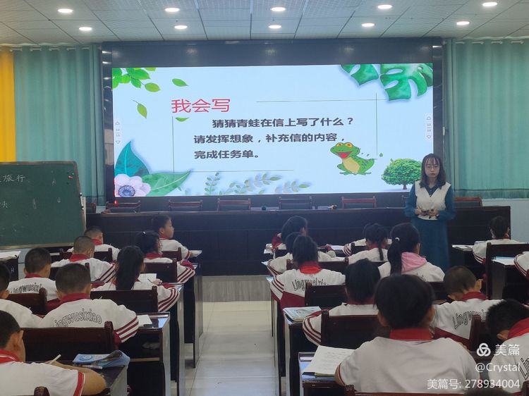 马所艳老师从拓展阅读部分进行评课,本节课还是“以文带文”课型,选的拓展阅读《等信》,是和课文主题相同的,而且也是对话较多的,以课内为主,课外为辅,形成了合力。为发展水平而拓展。重视了语言的感悟,又落实了水平训练。同时拓展了学生的阅读量。补充青蛙信的内容,加深了对文本的理解,又训练了学生的书面表达能力。