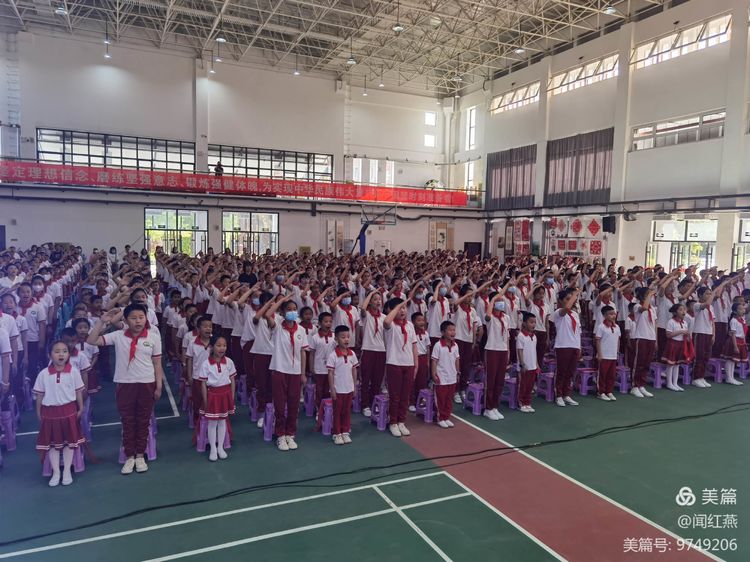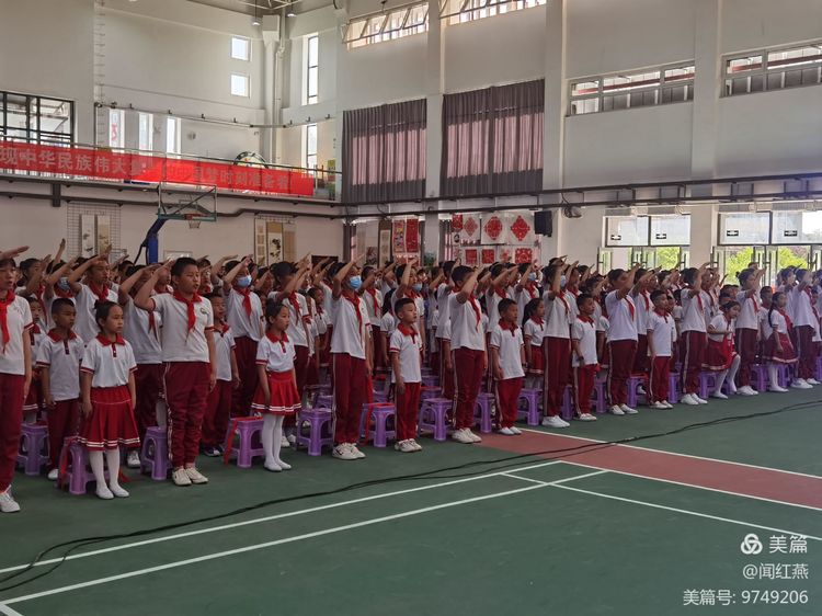 奏、唱雄壮的国歌后伴着铿锵欢快的出旗曲,一面鲜红的中国少年先锋队队旗,在旗手的护卫下,缓缓入场。