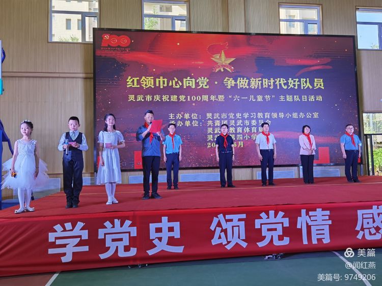 借此契机,为庆祝中国共产党成立100周年,教育引导广大少先队员听党话、感党恩、跟党走,用实际行动把红色基因一代代传下去,增强少先队员荣誉感、使命感,由灵武市党史学习教育领导小组办公室主办, 共青团灵武市委员会 、灵武市教育教体局、灵武市第四小学承办的灵武市2021年“红领巾心向党、争做新时代好队员”庆祝建党100周年暨庆‘六一儿童节’主题队日活动在灵武市四小拉开了帷幕!