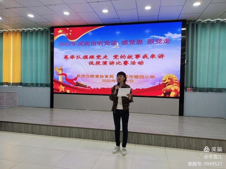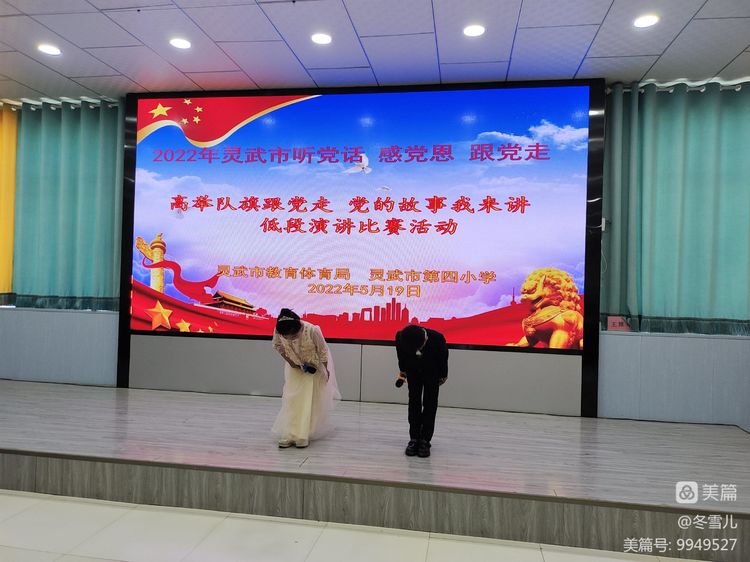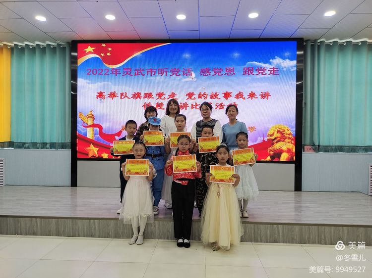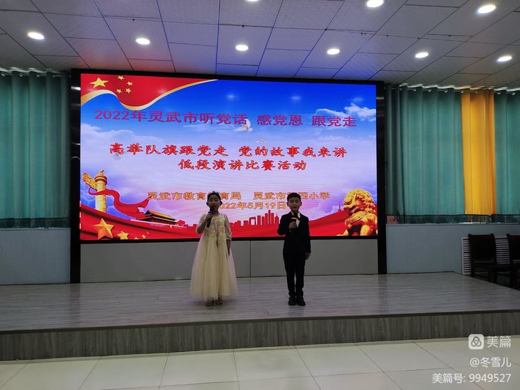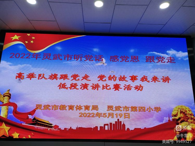 为进一步加强我校的思想教育工作,引导学生更好地感党恩、听党话、跟党走,让红色基因在学生心中牢牢扎根,2022年5月19日下午,灵武市第四小学低年级学生在老师们的组织下进行了“童心向党,薪火相传”——《高举队旗跟党走,党的故事我来讲》活动。