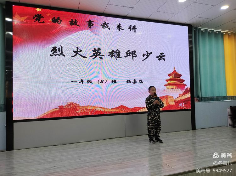 杨佳扬同学给大家带来的故事《烈火英雄邱少云》,让我们记住了革命先烈视死如归的大无畏精神和爱国情怀。