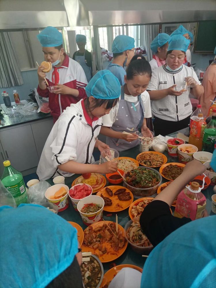 在烹饪中,他们团结协作;在品尝中,他们喜上眉梢,把自己最拿手的厨艺发挥得淋漓尽致。