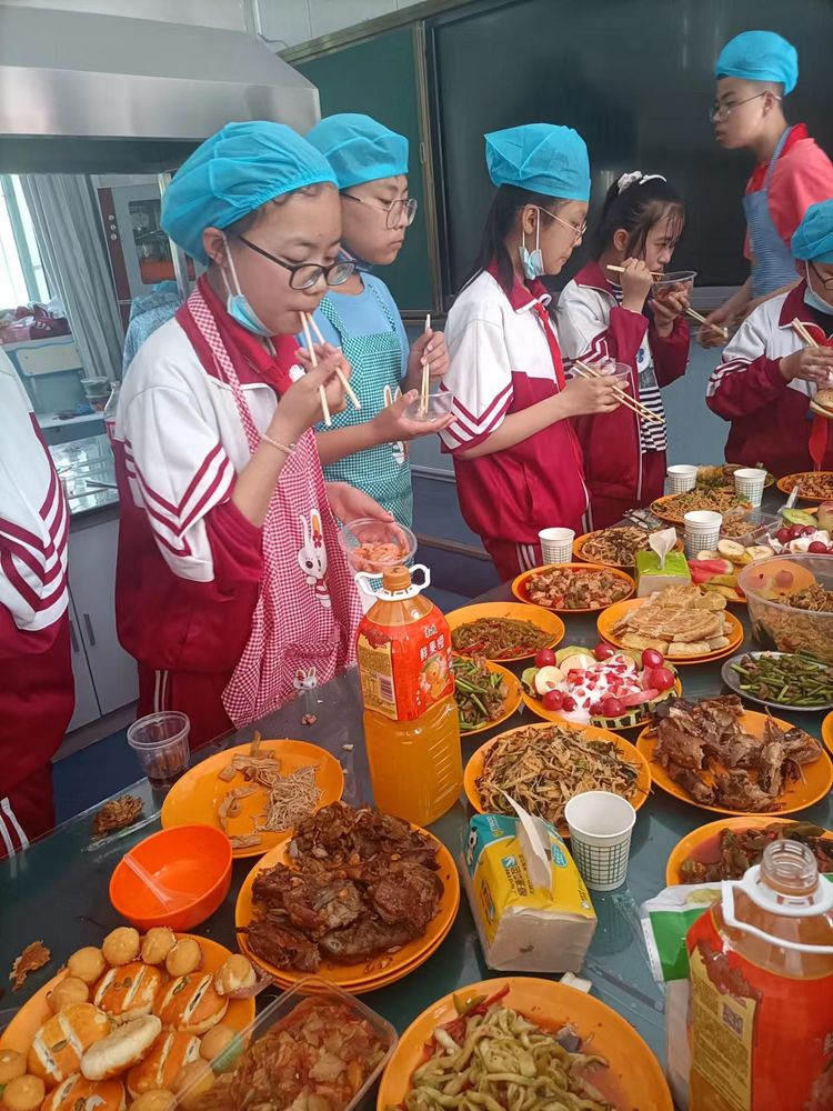 “人生在勤,勤则不匮。”梦想的花朵,唯有以劳动浇灌才能绚丽绽放。 同学们以“不负美食,共享时光”为主题,分成八个小组,有条不紊,各自分工,很快就制作出了一道道沁人心脾的美味佳肴来。