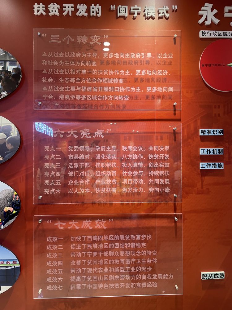 在闽宁镇,我们第一站就是参观闽宁镇政史馆。全体党员观看了介绍闽宁镇发展的专题片和相关历史图片,共同回顾闽宁镇移民搬迁、艰苦创业的艰辛历程。展馆从“今日闽宁镇”“苦瘠甲天下”“高瞻展宏图”“关怀与共建”“四个样板镇”“小康新梦想”六个方面,集中展示了闽宁镇对口扶贫协作的历史变迁,诠释了移民群众在闽宁协作扶贫开发的征程中,携手建设美丽家园,追求幸福生活的伟大精神和奋斗历程。全体党员教师重温了习近平总书记视察闽宁镇时“闽宁镇从当年的干沙滩变成今天的金沙滩”的讲话精神,对党中央东西部扶贫协作战略决策重要意义有了更深的认识,亲身体会到了国家在脱贫攻坚工作中取得的丰硕成就。