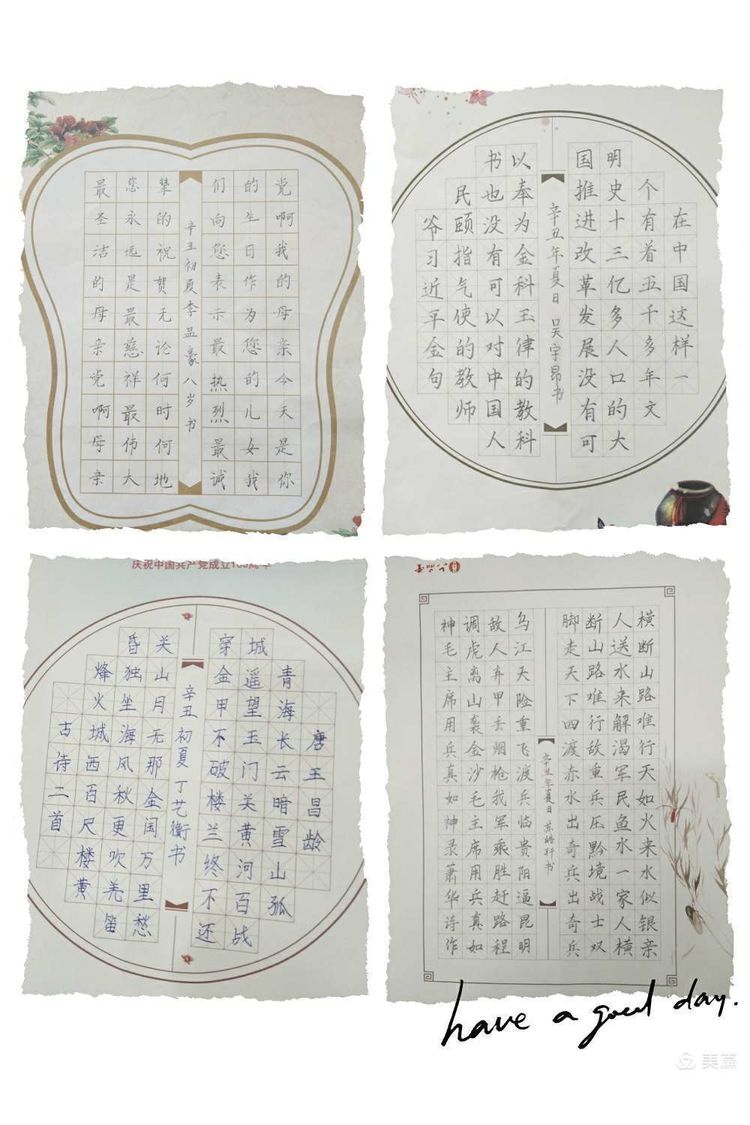 好字是学生的基本素养,写字能培养细心观察、勤奋刻苦等品质,为迎接“中国共产党建党100周年”,进一步传承和发扬中国书法文化,激发学生对祖国灿烂文化和语言文字的热爱之情,丰富校园文化底蕴,促进学生书写水平的提高。5月20日下午,我校一至六年级每班推选3名“书写星”集中在四楼大会议室,举行以“献礼建党100周年”为主题的现场硬笔书法大赛。