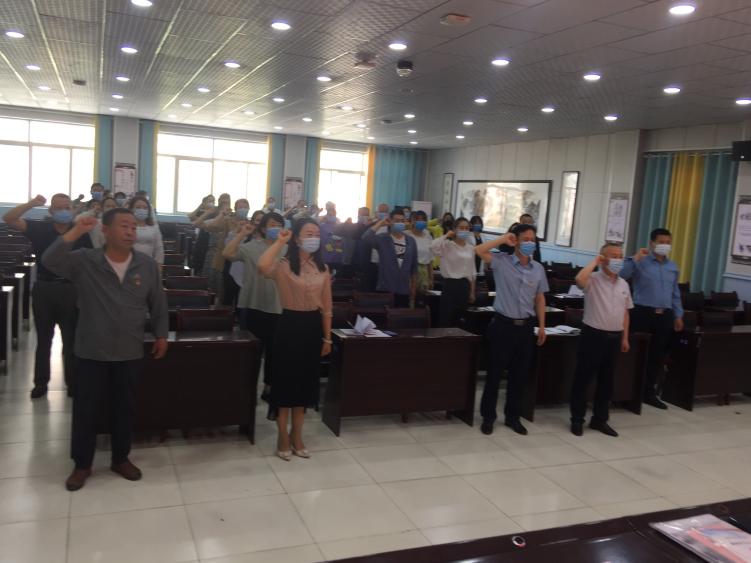 宣传委员孙学军同志带领全体党员宣誓,全体党员同志举起右拳,庄严宣誓,回荡在会议室的铮铮誓词,让每一位党员心潮澎湃,精神振奋。