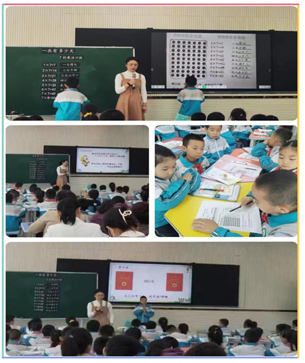 禹老师执教的是北师大版二年级上册数学第八单元第二课时《一共有多少天》,这节课的主要内容是学习7的乘法口诀,禹老师通过创设具体的问题情境,让学生先独立编制乘法口诀,学生在圈一圈,画一画,写一写中感受“数形结合”思想,理解乘法的意义。在让同桌合作,小组合作说一说中培养学生的合作能力,语言表达能力。通过找规律、拆红包游戏等方法记住7的乘法口诀,并能运用7的乘法口诀解决生活中的实际问题。