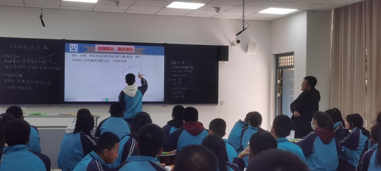 课后,贺小飞老师先就这节课进行说课,同时提出自己的不足和开展1363模式教学中出现的困惑。随后,全体数学老师对这堂课进行了点评,老师们充分发表了自己的看法,肯定了本节课中所展现的亮点。同时,对于就1363教学模式在教学中困惑进行了交流讨论。