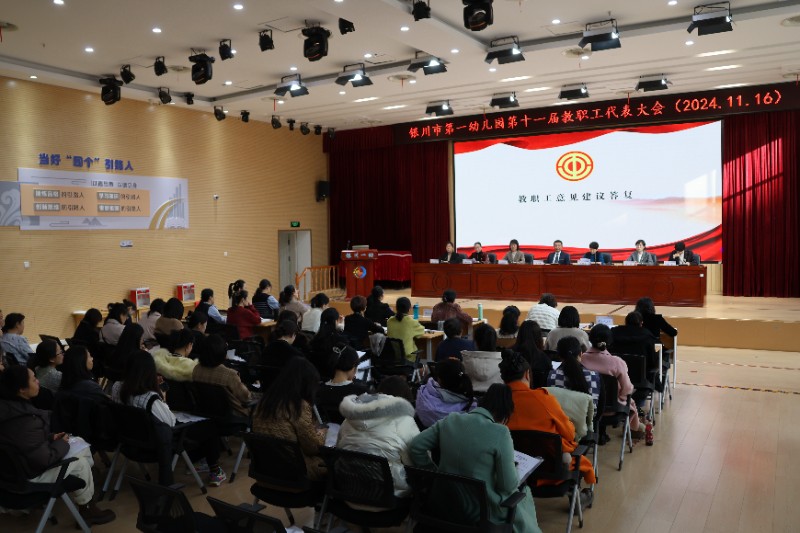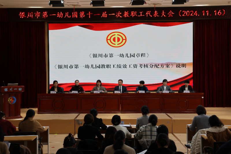 2024年11月16日上午8:00,银川市第一幼儿园召开第十一届一次教职工代表大会,会议应到代表65名,实到代表60名,会议由党总支委员副园长孔洁主持,教职工代表们齐聚一堂,共谋幼儿园发展新篇章。会议在庄严的国歌声中拉开序幕。