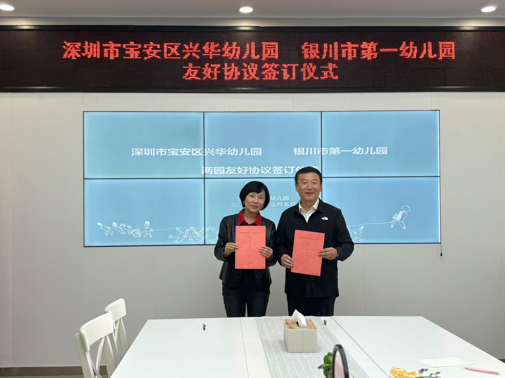 当此际,银川市第一幼儿园积极拓展对外交流合作版图,先后与广州市第一幼儿园、广东省公安厅幼儿院、深圳市宝安区兴华幼儿园签署友好互助合作协议。截至 2024 年 12 月,我园已成功与延安洛杉矶保育院、成都市第十六幼儿园等五所幼儿园签订了友好互助合作协议。一纸协议,不仅是双方资源共享、优势互补、协同发展、携手共进、砥砺前行的责任担当与行动纲领,更是银川一幼善善从长看世界、开放发展强活力、共绘蓝图担使命的有力举措。