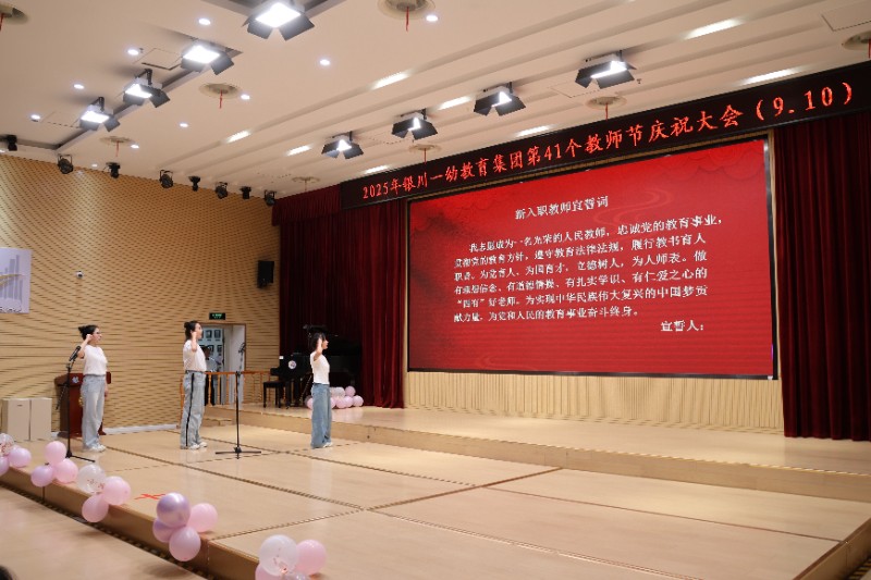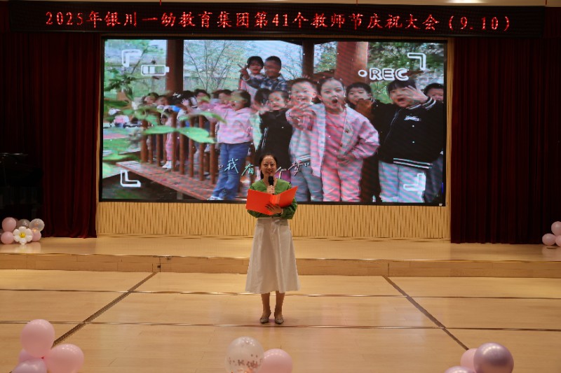 为大力弘扬教育家精神,激励幸福一幼教职工奋勇争先,谱写学前教育高质量发展新篇章,聆听优秀教师的奋斗故事,展现教师队伍的教育情怀与责任担当,2025年9月10日,银川一幼教育集团全体教职工齐聚幸福剧场,隆重举行第41个教师节庆祝大会。
