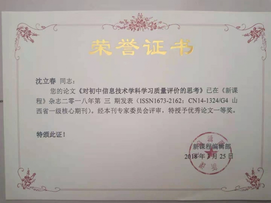 【成果展示】对初中信息技术学科学习质量评价的思考——平罗县第六中学 沈立春