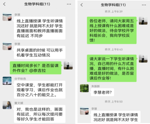 会议第二项:组内教师交流线上教学的困难、经验以及下周线上教学的计划。针对生物学科特点,探讨了如何有效进行线上教学,统一了教学进度,明确了下一步线上教学采用播放国家精品课与教师辅导相结合的方法。