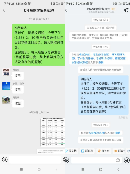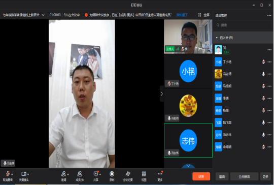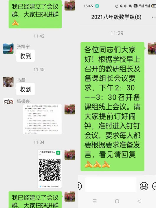 2022年9月25日下午2:30-3:30,数学组分学科备课组在学校的领导和号召下,召开了线上教学大讨论活动,就后期线上教学相关事宜进行线上研讨。
