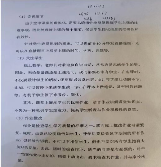(1)每位教师要正确面对疫情下的教学,要关注学生课堂在线状态及心理变化等;