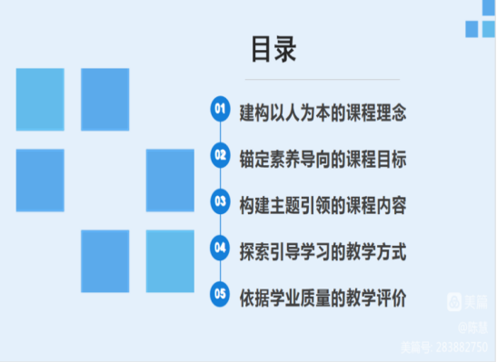 在第三部分“构建主题引领的课程内容”中,研读着重强调英语课程内容的选取应遵循培根铸魂、启智增慧的原则,紧密联系现实生活,体现时代特征,反映社会新发展、科技新成果等中整体设计英语课程内容,以主题统领课程内容,并用主题使课程内容结构化,真正使英语课程教学落在实处,学生学到实处!